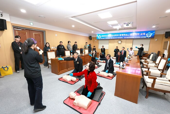 심상휴 의장은 “이번 교육을 통해 응급상황 발생 시 군민의 소중한 생명을 지킬 수 있는 대응력을 높이는 계기가 됐다”며, “앞으로도 다양한 안전교육을 지속적으로 추진하겠다.”라고 밝혔다.