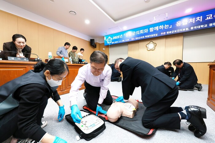 [청송=박병상 기자] 청송군의회(의장 심상휴)는 지난 4일 특별위원회실에서 ‘2025년 청송군의회와 함께하는 응급처치교육’을 실시하여 응급상황 대처 능력을 강화하는 시간을 가졌다.