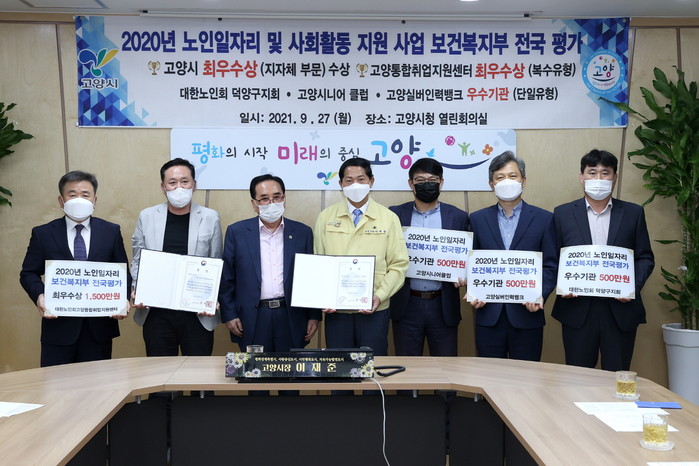 | ▲ 사진제공=고양시청/2020년 노인일자리 보건복지부 전국 평가 최우수상 수상 |