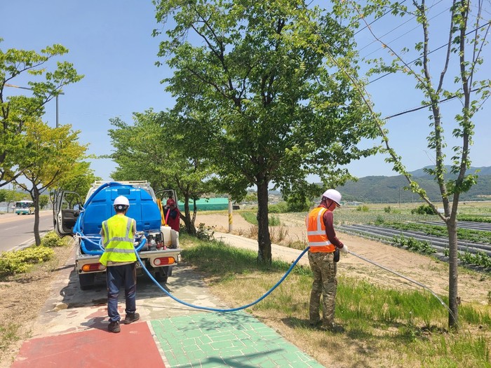 함양군은 가뭄피해가 우려되는 관내 도시숲 내 수목 및 가로수를 대상으로 관수작업을 추진했다.