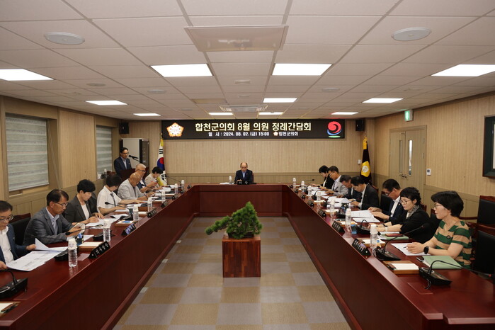 군의원 및 관계공무원 등 20여명이 참석한 이 날 간담회에서는 재단법인 합천군인재육성재단 설립, 농산물 안전분석실 운영사업 공모 추진 등 군정 주요업무현황을 부서장으로부터 설명을 듣고, 의정활동 전반에 관하여 논의를 하였다.