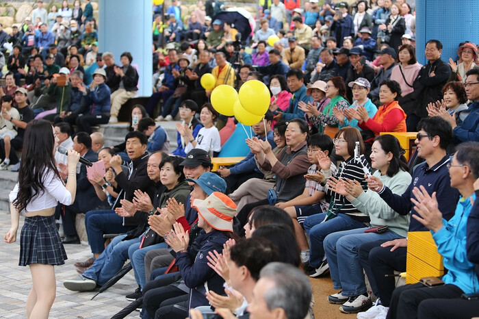 | ▲ 월출산국화축제 기간 인기가수 노래 공연을 즐기고 있는 관광객들 / 영암군 제공 |