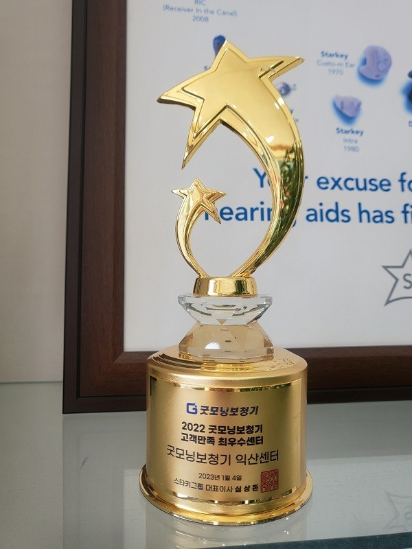 2022년 고객만족 최우수센터로 굿모닝보청기 익산센터(원장 김영란)가 선정됐다. 이번 수상으로 2018년 개원한 굿모닝보청기 익산센터는 4년 연속 최우수센터로 선정되는 영예를 안게 됐다.
