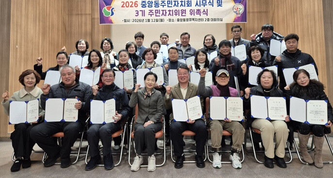 최명희 중앙동장은 “위촉되신 위원님들께 축하의 말씀을 전하며, 주민자치회는 지역 구성원들의 다양한 목소리를 하나로 모아 더욱 살기 좋은 중앙동을 만들어 가는 출발점이 되길 기대한다”라고 밝혔다.