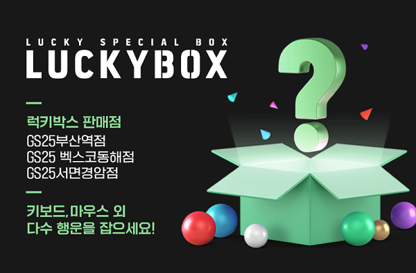GS25와 구글플레이가 준비한 한정판 럭키박스는 구글 굿즈인 게임용 키보드, 마우스, 텀블러, 마우스 장패드와 GS25 유어스상품으로 구성되어 있으며 구매 금액인 9,900원 이상의 혜택이 제공된다.