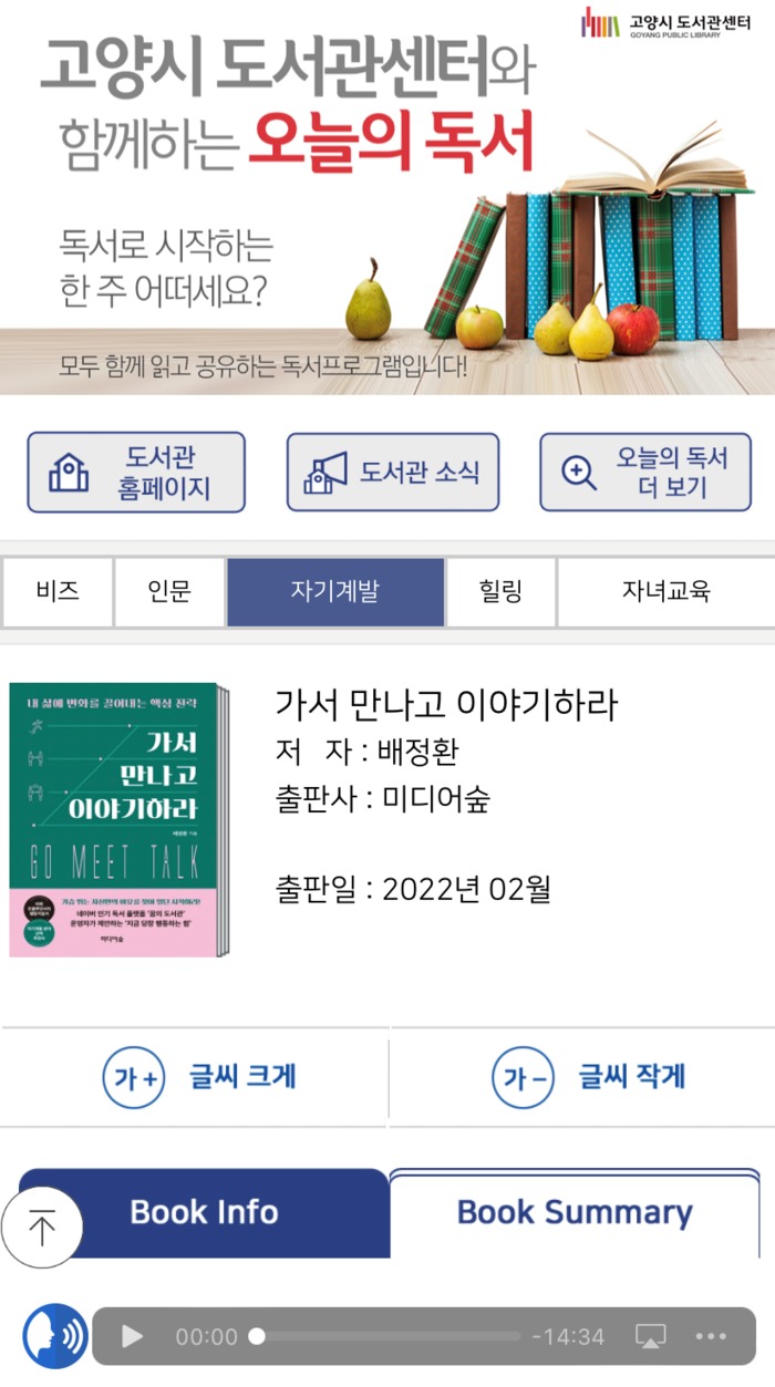 해당 서비스는 고양시 도서관센터 홈페이지 ‘도서요약’에서 신청하면 된다.