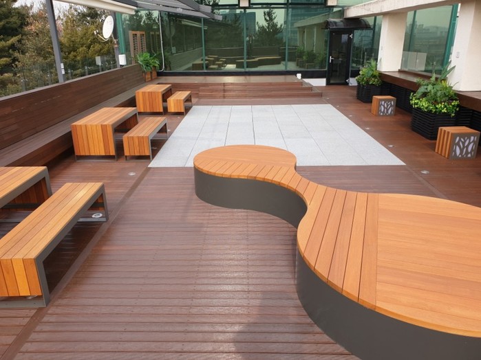 바닥 데크, 야외 테이블, 그늘막 등을 설치했으며 탁 트인 하늘정원에서는 북한산, 정발산의 전경을 볼 수 있다.
