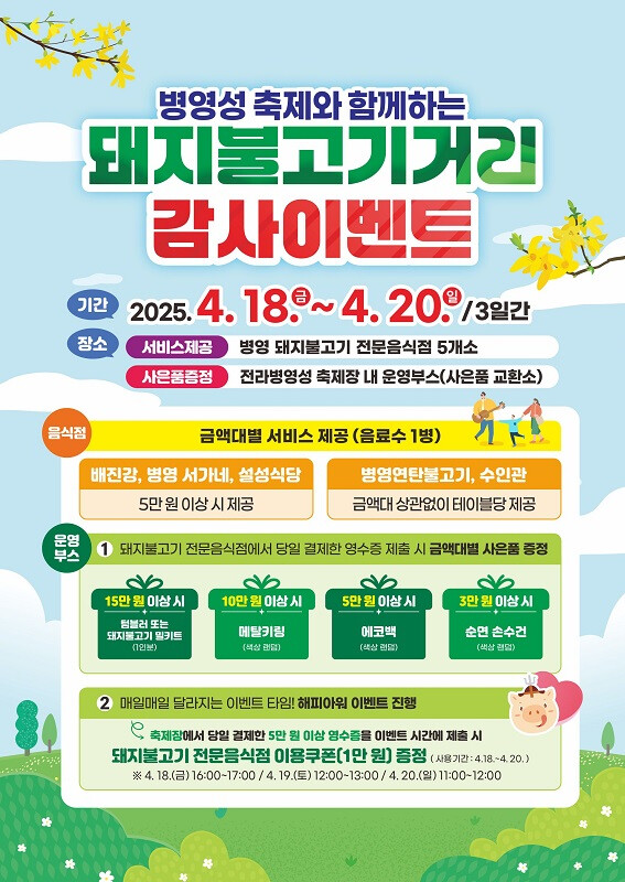 병영 돼지불고기거리 전문음식점 5곳서 감사이벤트