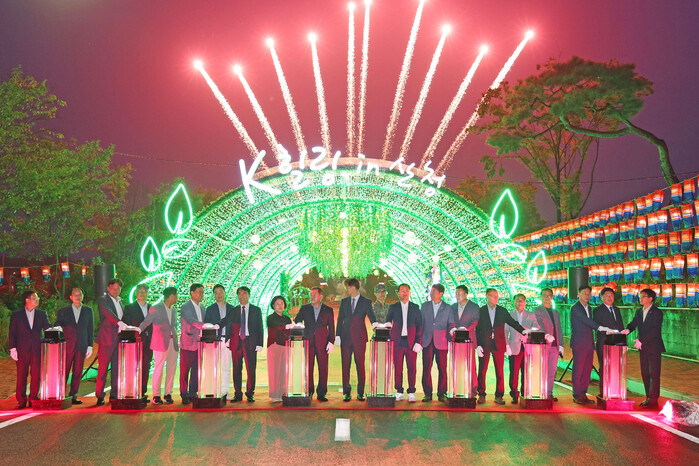 이날 불을 밝힌 힐링터널, 힐링약초정원, 축등, 게이트, 포토존 등은 10월 19일까지 다양한 불빛으로 행사장을 화려하게 수놓을 예정이다.
