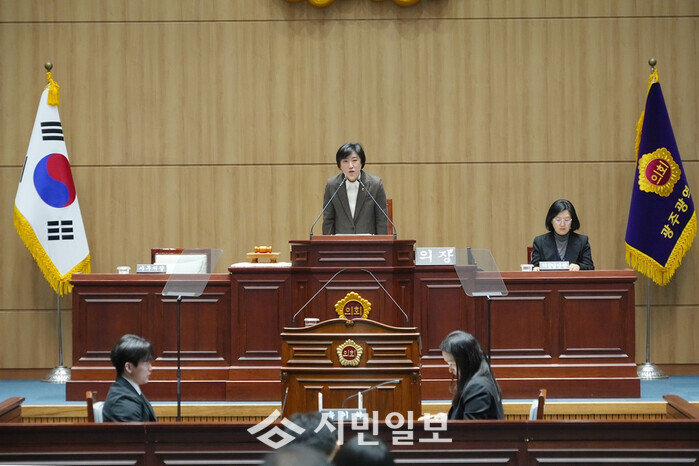 신수정 의장은 이번 회기는 시와 교육청의 새해 주요 업무보고를 청취하는 한편, 광주·전남 행정통합과 관련한 중대한 결정을 앞둔 ‘의회의 시간’임을 강조했다.
