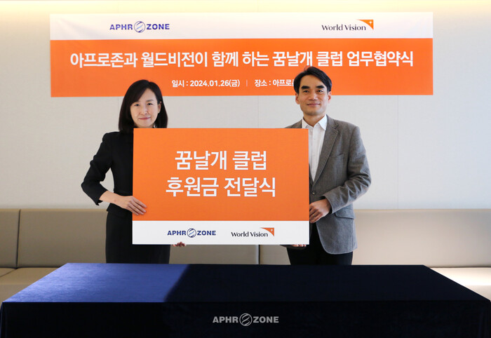 아프로존이 지난 26일 아프로존 자사 본사에서 월드비전 ‘꿈날개클럽’ 후원 협약을 체결했다고 밝혔다.