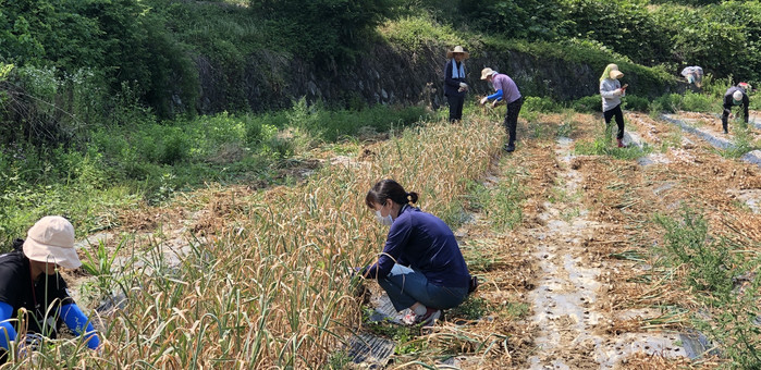 합천군 대양면(면장 주동회) 직원 10여 명은 9일 본격적인 영농철을 맞아 대양면 무곡리 소재 농가에서 농촌일손돕기를 실시했다. 이번 일손돕기는 농번기 일손부족으로 농작물 수확에 어려움을 겪고 있는 농가를 대상으로, 200평 규모의 농지에서 마늘을 수확하며 구슬땀을 흘렸다.