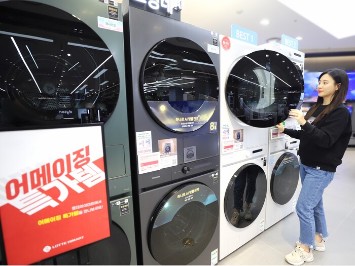 또한 롯데하이마트는 3월부터 삼성전자 ‘비스포크 AI 콤보’를 단독 론칭해 선보인다. ‘비스포크 AI 콤보’는 25kg 드럼 세탁기에 15kg 인버터 히트펌프 건조기를 합한 제품으로, 99분 만에 3kg의 세탁물을 세탁하고 건조할 수 있으며, 기존 제품 대비 최대 50% 공간을 절약할 수 있다. 또한 '직수 파워 오토 클린' 기능으로 건조기 열교환기를 자동 세척할 수 있고, 자동 세제 투입과 맞춤 세탁 코스도 이용할 수 있다. 3월까지 구매 시 모바일상품권, 1년치 세제 사은품 등 혜택을 제공한다.