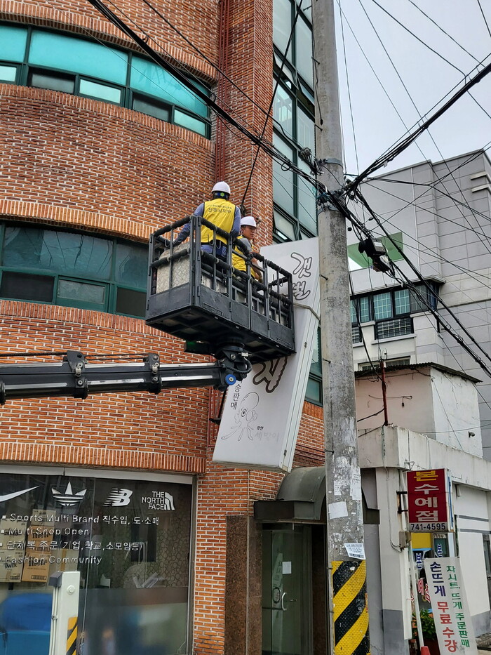 진주시는 도시 미관을 해치고 태풍 등 풍수해 발생 시 주민안전을 위협하는 무연고 및 노후 위험 간판 정비를 실시한다고 18일 밝혔다.