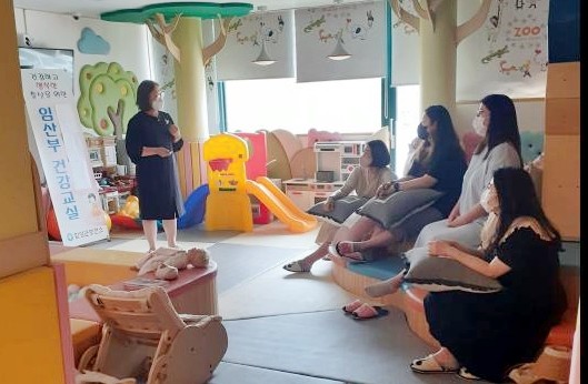 운영 내용으로는 ▲플라워 태교 ▲신생아 관리법 및 산후 조리법 ▲모유수유 및 베이비 마사지 ▲신생아 용품(애착인형 만들기) ▲이유식 만들기 ▲우울증검사 및 교육 ▲치과의사가 들려주는 엄마와 아가의 구강이야기로 구성돼 운영됐다.