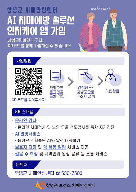 앱 가입은 창녕 군민이라면 누구나 가능하며 관련 문의는 창녕군보건소 치매관리팀 으로 하면 된다.