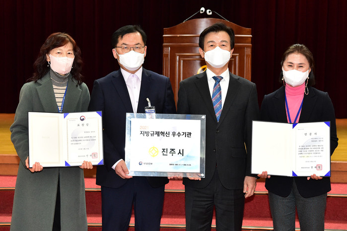 진주시는 규제혁신 종합계획을 수립하여 ▲찾아가는 규제신고센터 운영 ▲불합리한 자치법규 정비 ▲규제혁신 과제 발굴 등 규제개혁 업무 전반에서 고르게 높은 평가를 받았다. 시는 행안부장관 기관표창과 재정 인센티브 1억 원을 받았으며, 앞으로 3년 동안 규제혁신 우수기관 인증을 유지하게 된다.
