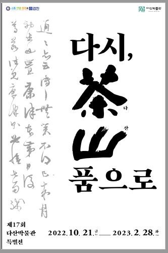 ‘다산이 쓰다’, ‘다산을 배우다’, ‘다산을 보다’, ‘다산을 기리다’ 4가지 주제관으로 구성해 다산과 그의 제자와 관련된 유물 71점이 강진군다산박물관 기획전시실에서 ‘다시, 다산 품으로’주제의 특별전이 지역민들에게 관람의 기회가 제공된다.
