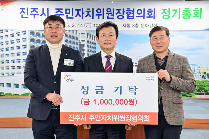한편, 제13기 진주시 주민자치위원장협의회는 정기총회에 앞서 성금 100만 원을 진주시 복지재단에 기탁했다.