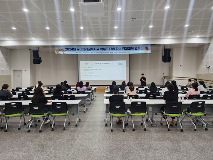 [구미=박병상 기자] 경상북도구미교육지원청(교육장 남성관)은 2024년 구미미래교육지구 사업의 일환으로 지난 25일(목) 오전 10시부터 새마을운동테마공원 다목적홀에서 관내 초·중학교 학부모 50여명을 대상으로 자녀 경제교육 연수를 실시했다.