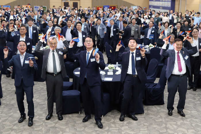 | ▲ 기업인의날 종이비행기 날리기 행사 모습 /사진제공=화성특례시의회 |