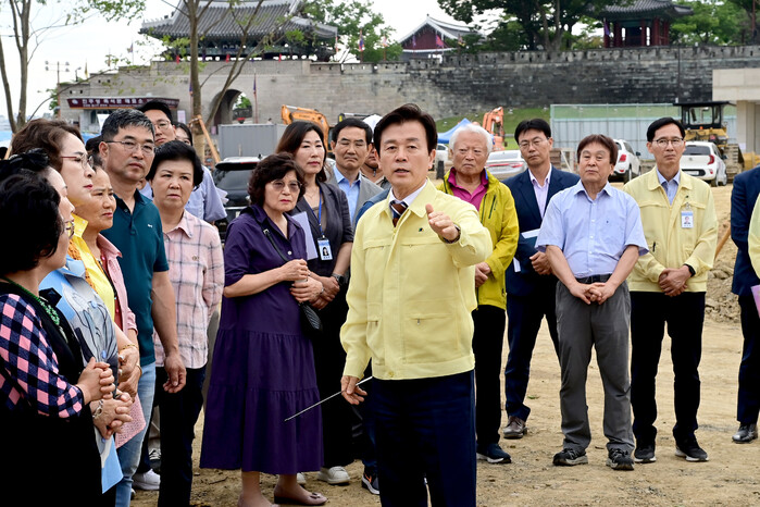 진주시는 진주대첩광장 조성을 위해 지난 2007년 타당성조사 및 기본계획을 수립하고, 10여 년간 부지 108필지 1만 3000㎡, 건물 81동에 이르는 대규모 보상 협의와 건물 철거 작업, 3년간의 문화유산 지표조사 및 정밀 발굴조사를 시행했다. 그리고 수차례의 국가유산청 자문과 심의를 거쳐 문화유산 현상변경허가를 받기까지 많은 시간과 노력을 들였다. 이후 실시설계 과정에서 경제성 검토, 지방건설기술심의 등 복잡하고 다양한 행정절차를 완료하고 기본계획 수립 15년 만인 2022년 2월 착공식을 가졌다.
