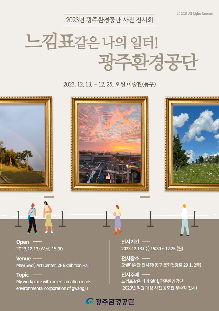 전시회는 ‘느낌표 같은 나의 일터, 광주환경공단’이라는 주제로 오월 미술관에서 13일(오픈식 15시 30분)부터 25일까지 열리며 관람을 희망하는 사람은 누구나 무료로 찾을 수 있다.