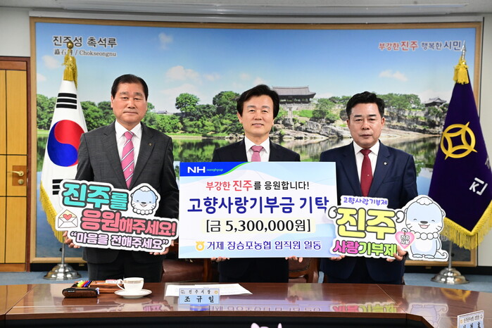 조규일 진주시장은 “서로를 응원하는 마음으로 고향사랑기부제에 동참하는 분들이 많아지면서 지역에서 큰 힘을 얻고 있다”면서 “기부제를 통해 마음을 전하며 소통과 협력이 한층 더 강화될 수 있는 기회가 되길 바란다”고 말했다.