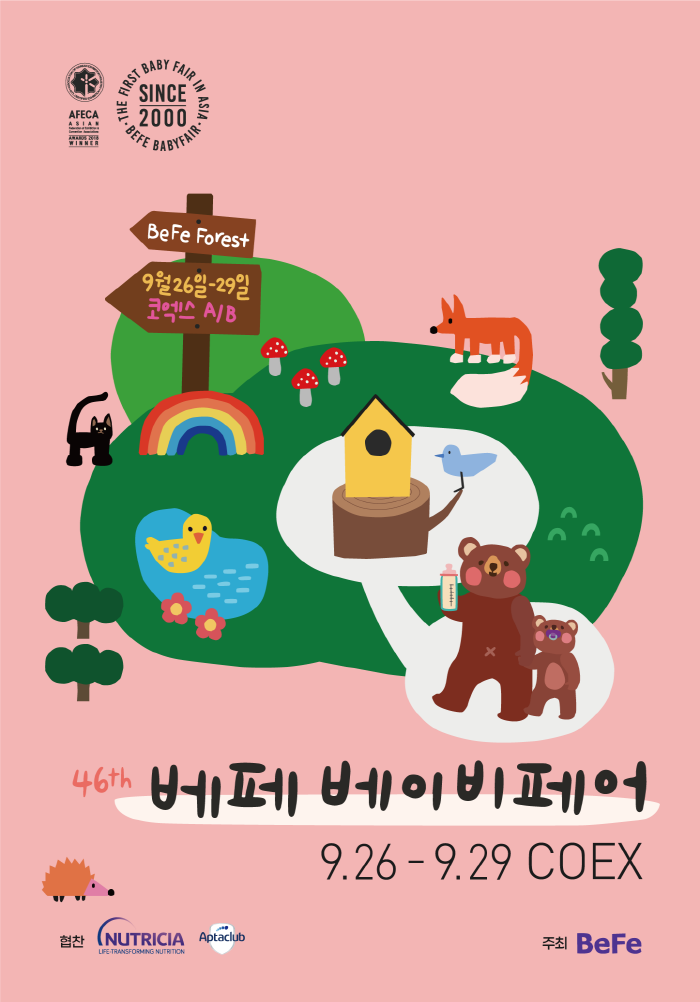 ㈜베페 관계자는 “이번 46회 베페 베이비페어는 우수한 육아용품 전시는 물론 ‘포레스트’ 컨셉으로 다양한 힐링 체험 공간과 강연 프로그램을 준비했기에 많은 분들이 참여해 육아의 즐거움을 만끽하고 푸짐한 선물 혜택도 받아 가셨으면 좋겠다”고 밝혔다.
