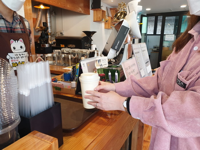 직원들은 개인 컵을 사용하고 민원인용과 회의용 컵은 다회용 컵을 별도 구입하도록 했다.