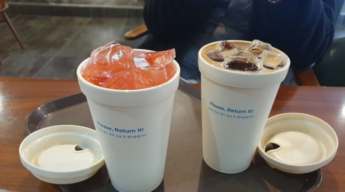 전문 세척업체에서 컵을 수거하여 세척, 살균, 진공포장 등 7단계 세척 처리과정을 마친 후 커피전문점에서 재사용된다.