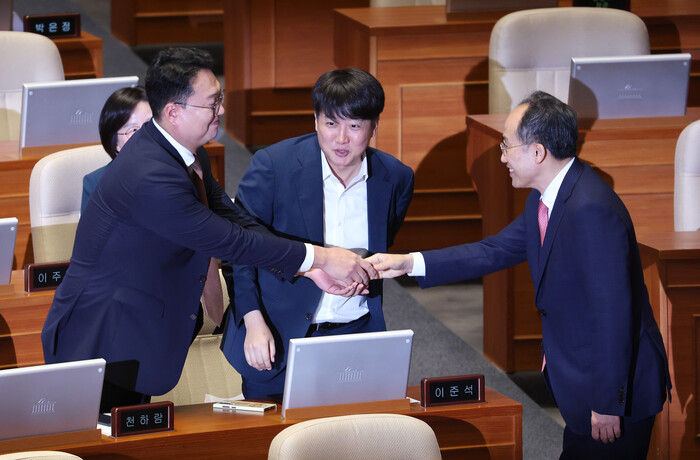 이 의원은 "당시 (윤 후보는)장제원 의원 등을 통해 (안 의원과)단일화를 추진했었지만 저는 공개적으로 반대했었다"며 "(명씨가 단일화 메신저 역할을 한 건)안철수 후보측 최진석 선대위원장 증언으로 확인된 바가 있다"고 강조했다.