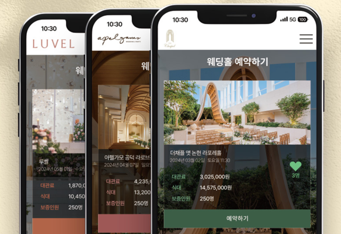 특히, 원하는 시간과 날짜에 따른 예식 견적 조회가 무제한 가능하며, 상담예약도 기존 전화 통화가 아닌 스마트 예약으로 원하는 날짜와 시간을 보며 예약이 가능하다. 이처럼 ‘스마트 예약’은 편리한 이용 방식과 투명한 정보 공개 덕에 가입 회원수는 1만명 돌파하며 뜨거운 호응을 불러 일으키고 있다.