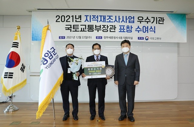 [영암=정찬남 기자] 전남 영암군은 국토교통부 주관 전국 자치단체를 대상으로 실시한 2021년 지적재조사사업 추진실적 평가에서 최우수기관으로 선정돼 국토교통부장관 기관표창을 수상했다고 23일 밝혔다.