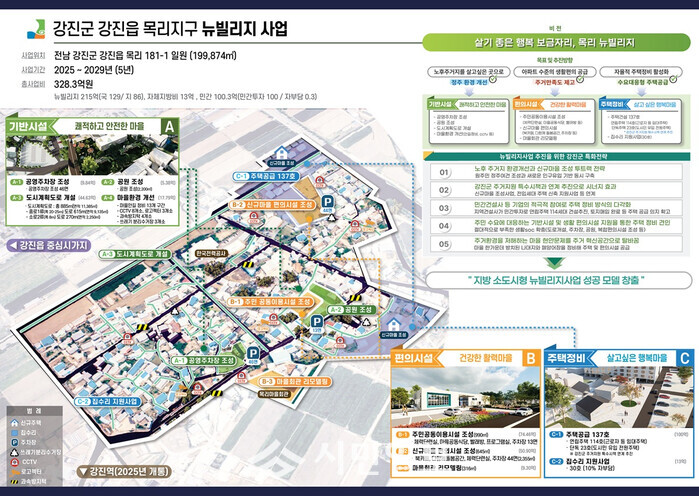 전남 강진군은 지난 2024년 12월 국토교통부가 새롭게 도입한 뉴빌리지사업의 첫해 공모에 선정된 이후, 지난 1년간 도시재생활성화계획 수립과 부지 확보 등 내실 있는 준비 과정을 거쳐 모든 행정절차를 마무리하고 올해부터 본격적인 정주 환경 개선의 닻을 올렸다.