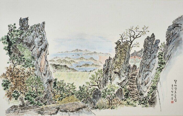 | ▲ 해남 가을미술관 전시회 박태준 작품 달마산도솔암 한지에 먹 73x113cm 202451x75cm / 해남군 제공 |