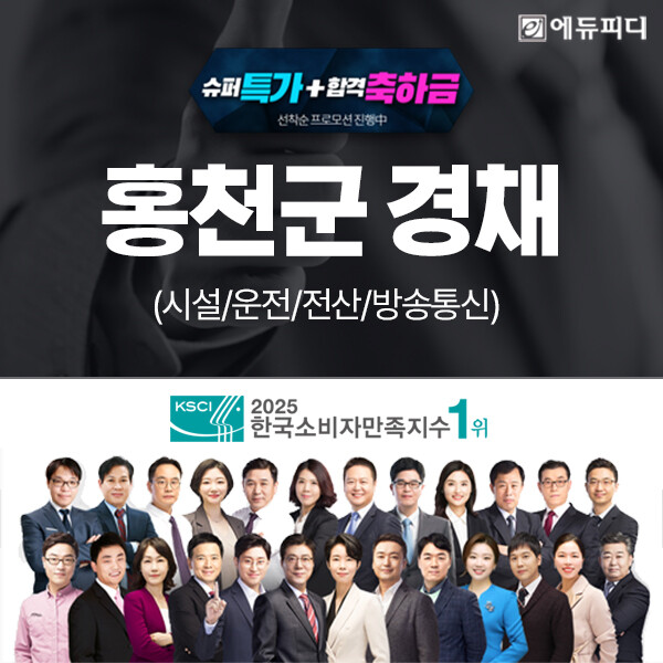 한편, 에듀피디는 홍천군 경채 채용 전 직렬 전 과목 ‘이론+문제풀이+기출해설특강’의 합격패키지 강의를 60일 단기 과정으로 기획해 짧은 수험 기간 만으로도 확실한 합격을 달성할 수 있는 학습전략을 제시한다는 방침이다.