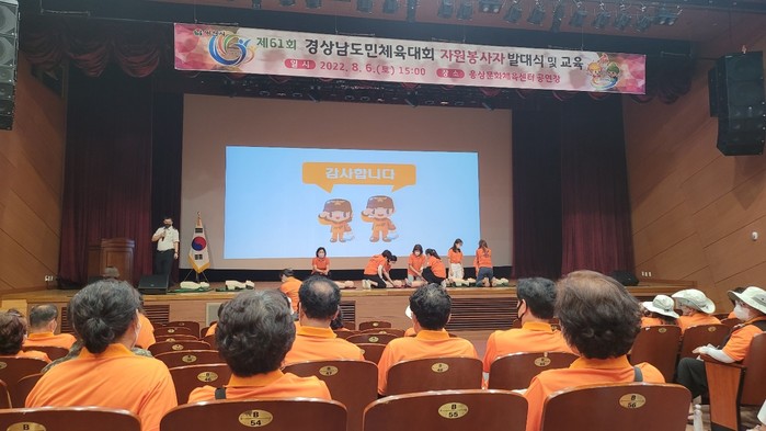 이번 교육은 경상남도 각 시·군에서 선수 및 관람객의 안내와 원활한 경기 운영 지원을 위해 모인 560여 명의 자원봉사자들의 안전사고 발생 시 적절한 대처 방법 및 현장 응급 처치 방법을 교육하기 위해 진행됐다.