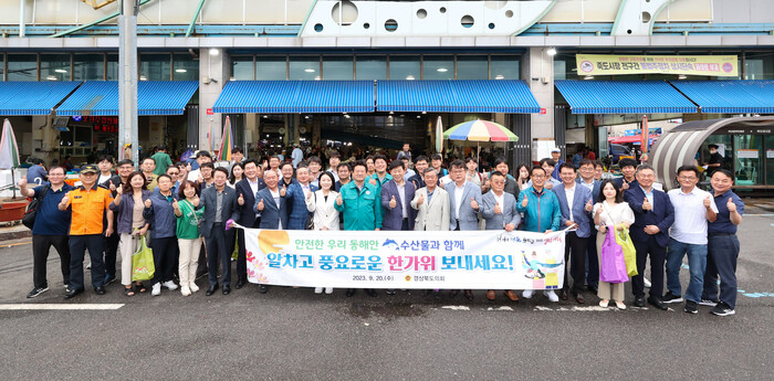 [안동=박병상 기자] 경상북도의회(의장 배한철)는 지난 20일 추석명절을 맞아 박용선 부의장, 이칠구 의회운영위원장, 한창화·김희수·이동업·연규식·서석영·김진엽·손희권 포항 출신 도의원과 의회사무처 직원 등 50여명이 참여한 가운데 포항시 죽도시장을 방문해 전통시장 장보기 행사를 가졌다.