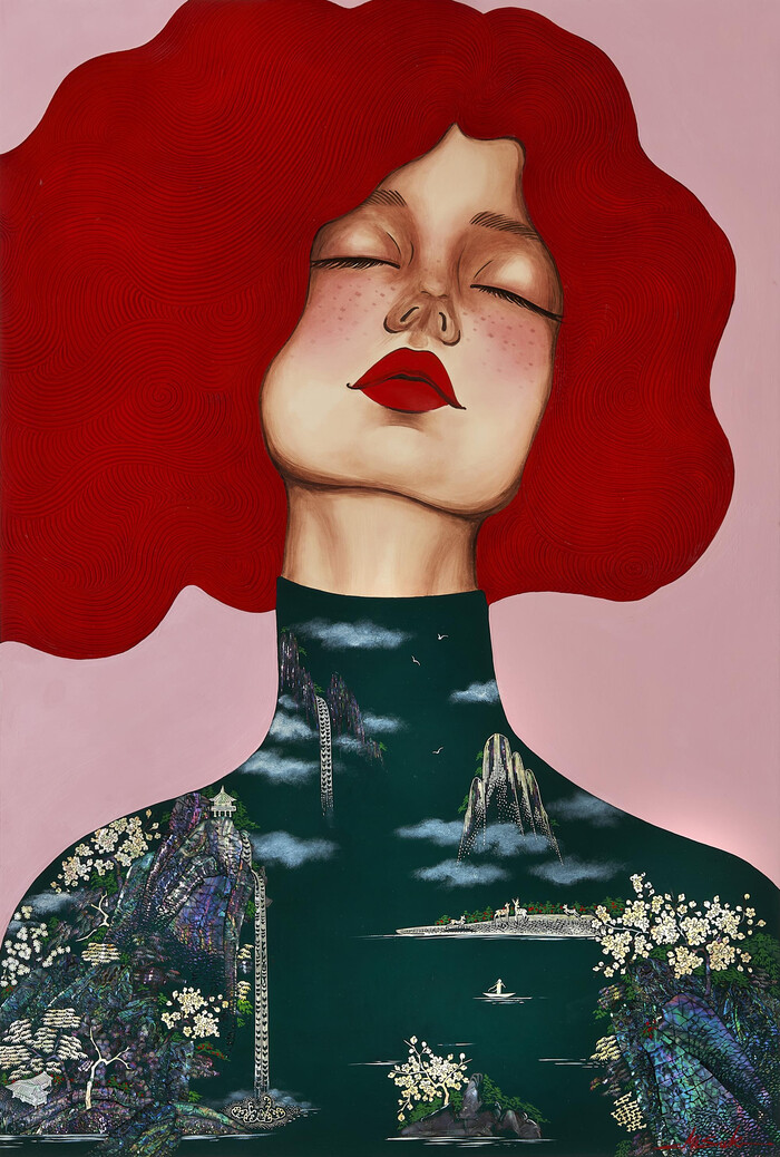 김미숙 작가는 최근 국내외 컬렉터들에게 큰 관심을 받으며 옻칠회화 분야에서 두각을 나타내고 있다. 전통 미술인 옻칠과 자개의 독특한 재료적 특성을 회화에 접목해 ‘그녀만의 새로운 작품 세계’를 구축한 김 작가는 ‘신미인도’, ‘무릉도원’, ‘청화백자’, ‘시선이 머물다’ 등 다양한 시리즈를 통해 현대 여성의 아름다움과 당당함을 표현하고 있다.