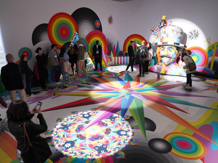 오쿠다 산 미구엘 특유의 과감한 색채, 기하학적 패턴과 풍선을 활용한 조형물과 홀로그램 미디어 등을 통해 관객들은 마치 놀이동산에 온 것 같은 착각이 들 정도의 입체적인 공간에서 사진도 찍고 일상의 여유를 즐겼다.