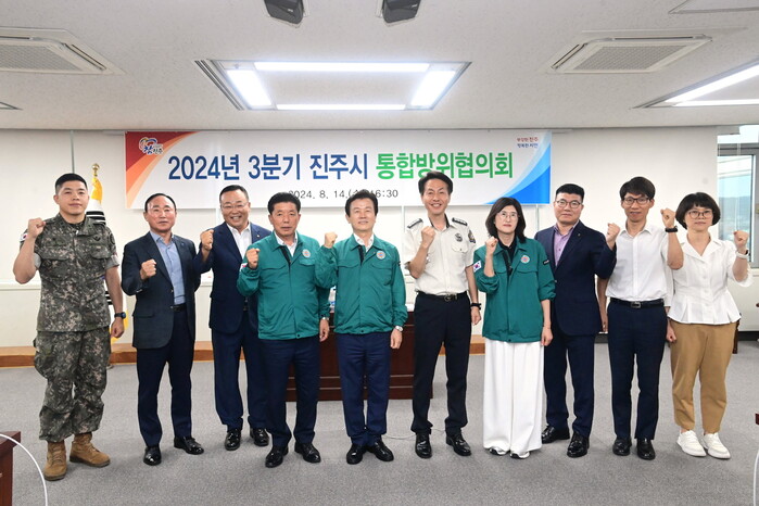 진주시통합방위협의회는 지난 14일 시청 5층 상황실에서 통합방위 위원 20여 명이 참석한 가운데‘2024년 3분기 진주시 통합방위협의회’회의를 개최했다.