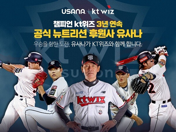 글로벌 세포과학 뉴트리션 전문기업 유사나헬스사이언스코리아(이하 유사나)가 2021년 프로야구 한국시리즈(KBO) 우승을 이뤄내며, 돌풍의 핵심으로 자리 잡은 프로야구단 KT위즈의 3년 연속 공식 뉴트리션 후원사로 공식 후원을 체결했다고 밝혔다.