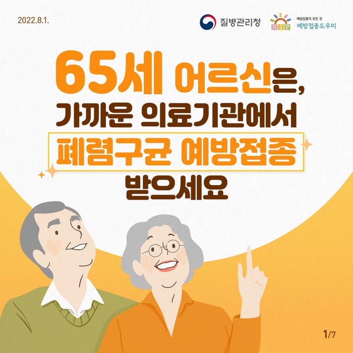 접종 대상은 만65세 이상 어르신(1958.12.31.이전 출생자)으로 주소지와 상관없이 전국 지정위탁의료기관에서 무료로 예방접종이 가능하다.