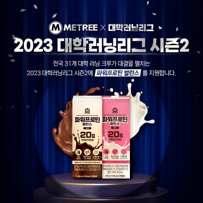 미트리 측에 따르면 이러한 취지를 응원하며 대학러닝리그 시즌 기간동안 운동 후 단백질 섭취를 함께 할 수 있도록 31개의 대학에 단백질 음료 ‘파워프로틴 밸런스’ 제품을 후원한다.
