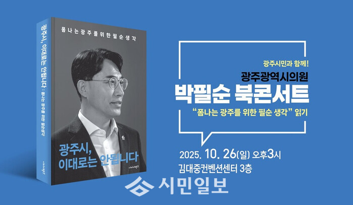 [광주=정찬남 기자] 박필순 광주광역시의원(첨단1동·2동)은 오는 26일 오후 3시 김대중컨벤션센터 3층에서 저서 ‘광주시, 이대로는 안됩니다:폼나는 광주를 위한 필순생각’ 출판기념회를 개최한다.