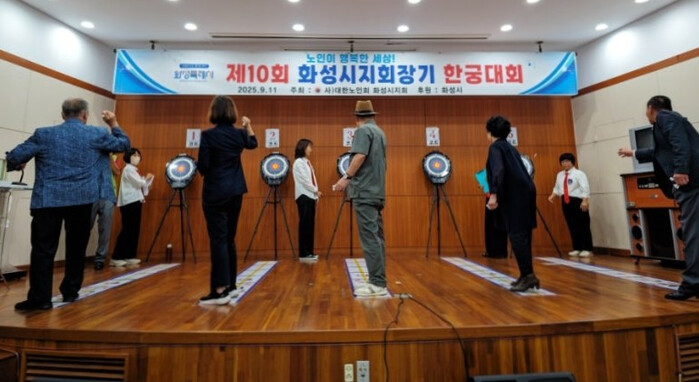 | ▲11일 열린 제10회 대한노인회 화성시지회장기 한궁대회에서 선수들이 경기를 하고 있다 /사진제공=화성특례시 |