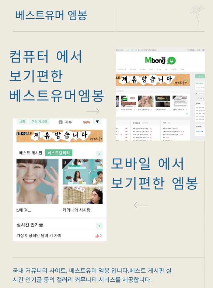 다양한 분야의 정보와 의견을 나누는 커뮤니티사이트 '엠봉(Mbong) – 베스트유머(이하 엠봉)’이 사이트 리뉴얼 개편을 완료하고 보다 쉽고 편하게 이용할 수 있도록 했다.