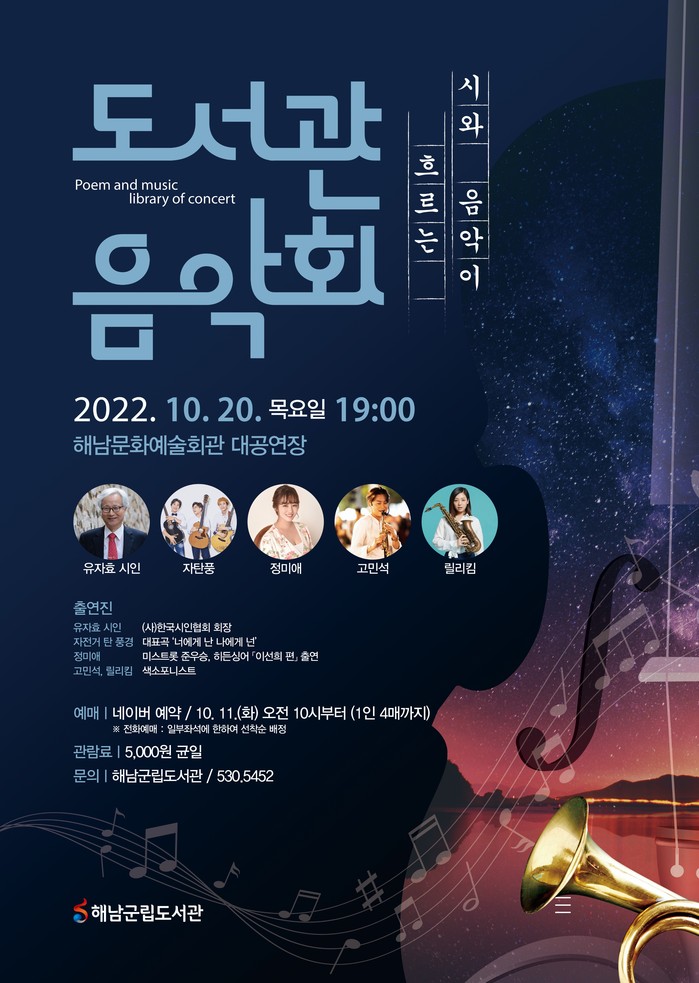 | ▲ 시와 음악이 흐르는 도서관 음악회 포스터 / 해남군 제공 |