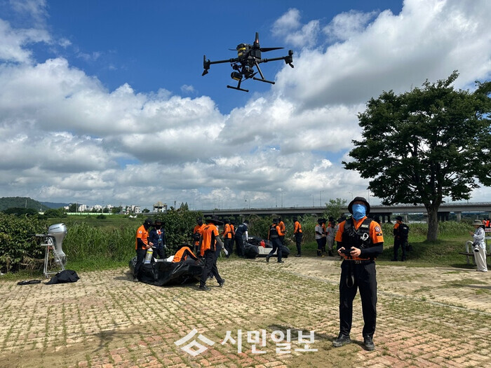 광주소방안전본부는 22일 소방헬기, 드론, 구조보트 등 장비 26대와 소방공무원, 의용소방대 등 188명의 인력을 현장에 투입해 집중수색을 벌이고 있다. 경찰 100여 명도 함께 수색에 나섰다.